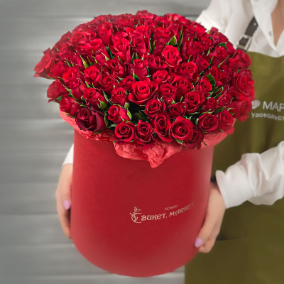 Букет из 101 красной Кенийской розы в шляпной коробке| 13 800 Р | без скидки |