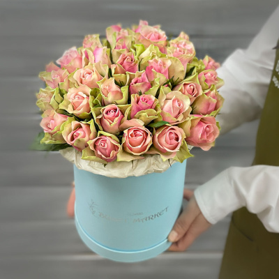Букет из 35 зелено-розовых Кенийских роз в шляпной коробке| 6 800 Р | без скидки |