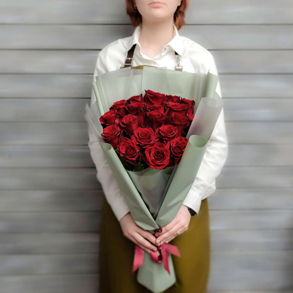 19 красных роз Эквадор 60 см в упаковке