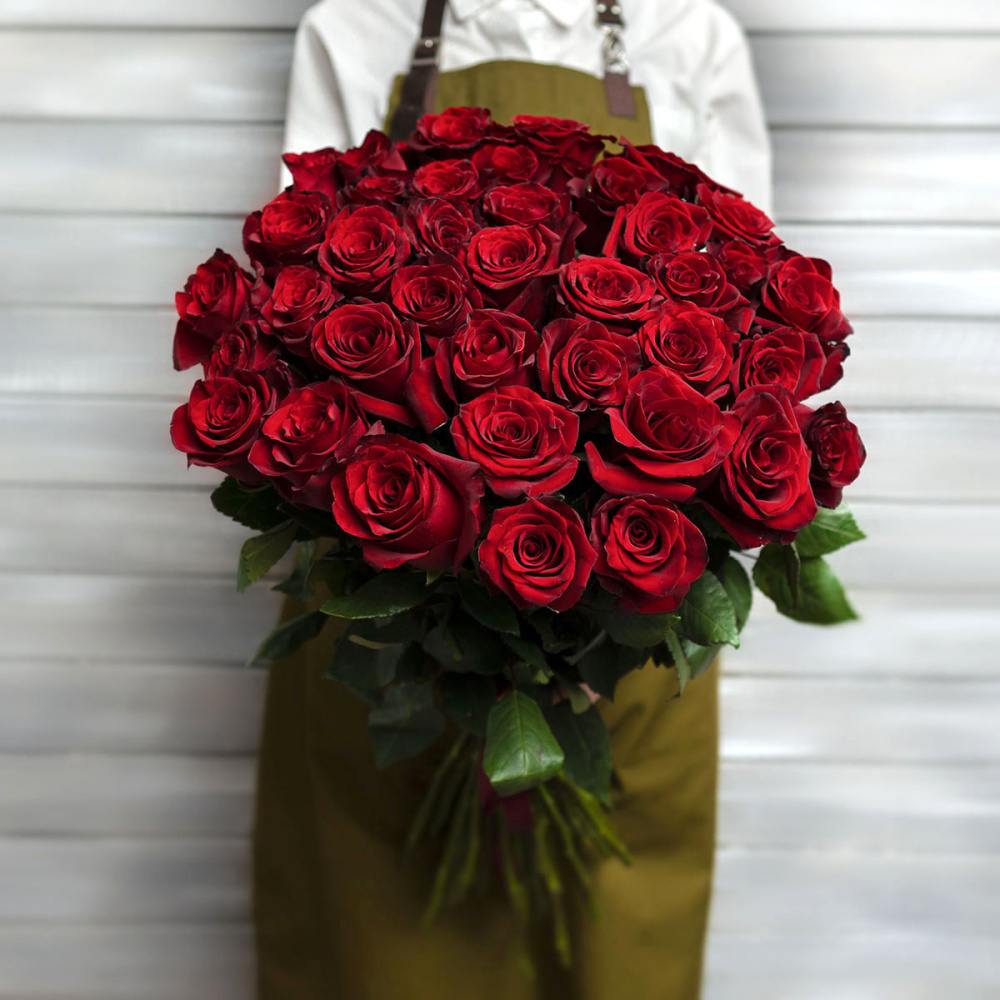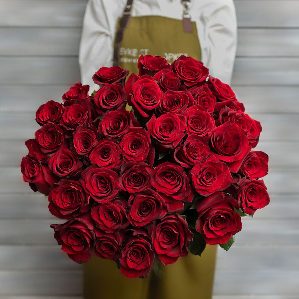 39 красных роз с лентой Эквадор 60 см