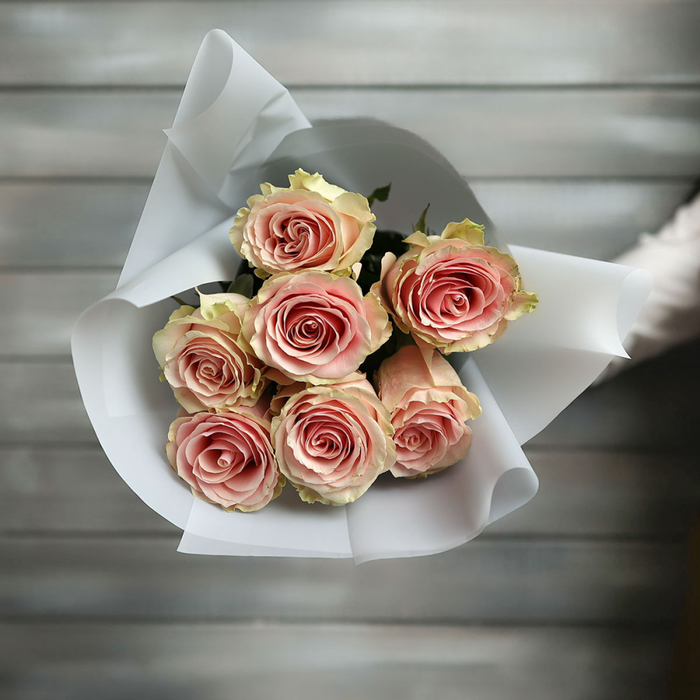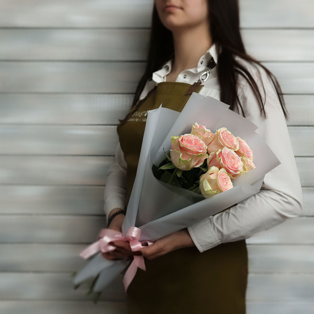 7 нежно-розовых роз Эквадор 50 см в упаковке