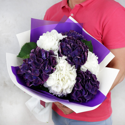 Яркий букет из гортензий, листьев эвкалипта и дуба в оригинальной упаковке| 4 500 Р | без скидки |