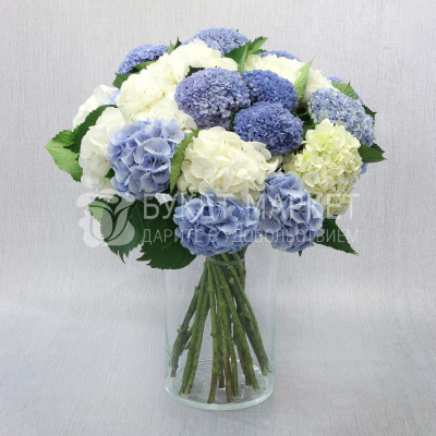Букет из 25 белых и голубых гортензий| 21 200 Р | без скидки |