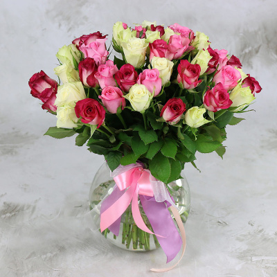 Букет из 51 белой и розовой розы Кения 40 см.| 4 640 Р | без скидки |