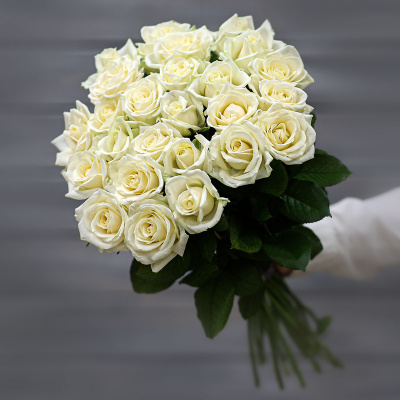 25 белых роз в упаковке Россия 60 см.| 4 900 Р | без скидки |