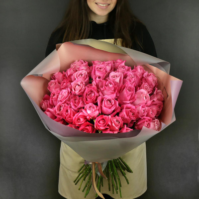 Букет из 51 розовой розы в упаковке Россия 60 см.| 7 800 Р | без скидки |