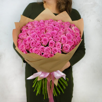101 розовая роза в крафте Россия 60 см.| 14 700 Р | без скидки |
