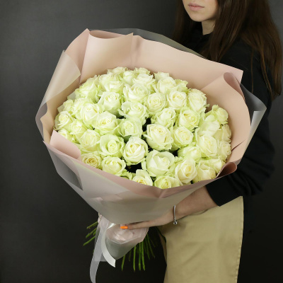 Букет из 51 белой розы в упаковке Россия 60 см.| 9 300 Р | без скидки |