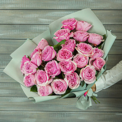 Букет из 25 ярко-розовых пионовидных роз| 12 000 Р | без скидки |