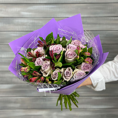 Букет из сиреневых роз и альстромерий| 5 200 Р | без скидки |