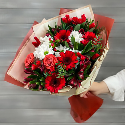 Букет из мини гербер, хризантем и роз| 5 400 Р | без скидки |