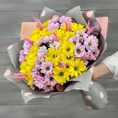 Букет из хризантем, мини гербер и роз| 6 500 Р | без скидки |