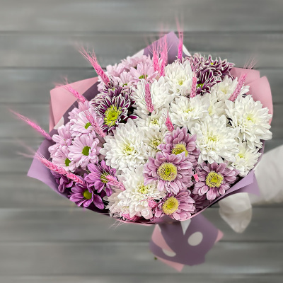 Букет из 9 кустовых хризантем и пшеницы| 4 500 Р | без скидки |