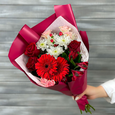 Букет из роз, гербер и хризантем| 4 000 Р | без скидки |