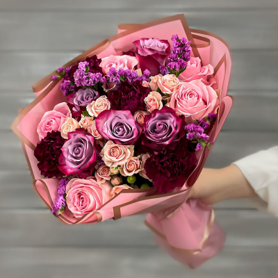Букет из роз, гвоздик и статицы| 5 200 Р | без скидки |