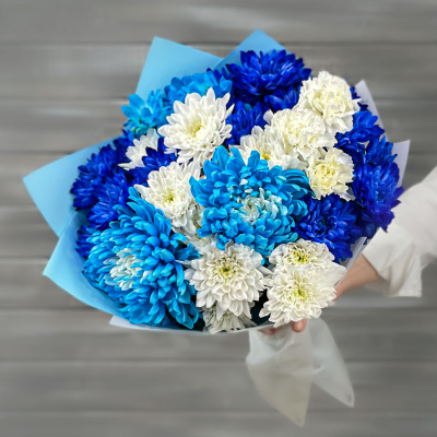 Букет из белых, голубых и синих хризантем| 4 600 Р | без скидки |