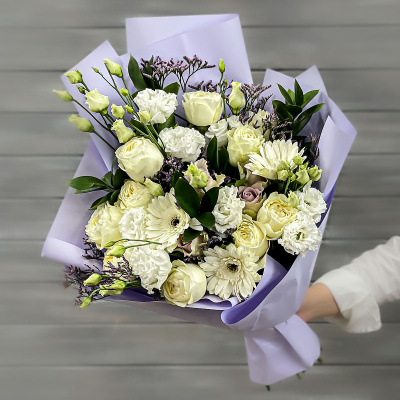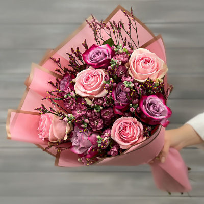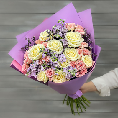 Букет из роз, лимониума и маттиолы| 5 000 Р | без скидки |