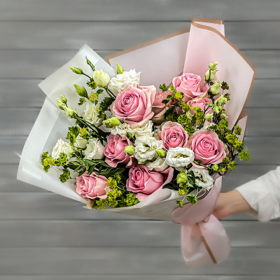 Букет из лизиантуса и розовых роз| 6 900 Р | без скидки |