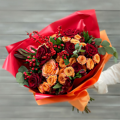 Букет из красных и оранжевых роз| 10 500 Р | без скидки |