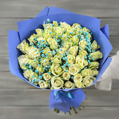 Букет из 51 белой розы и гипсофилы| 5 460 Р | без скидки |