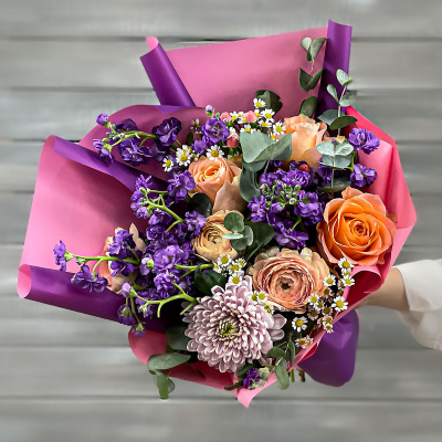 Букет из маттиол, роз и хризантемы| 6 800 Р | без скидки |