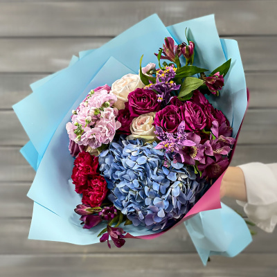 Букет из гортензии, роз и маттиол| 6 600 Р | без скидки |