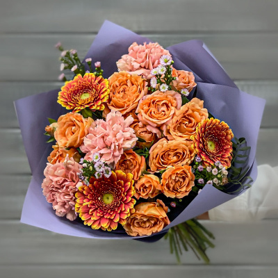Букет из кустовых роз, гербер и гвоздик| 5 000 Р | без скидки |