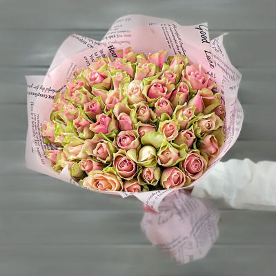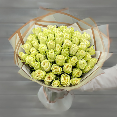 Букет из 51 зелено-розовой розы в упаковке Кения 40 см.| 5 320 Р | без скидки |