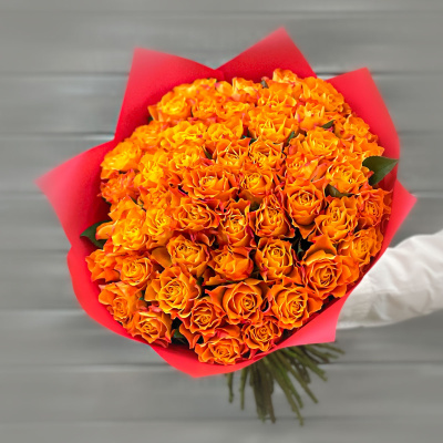 Букет из 51 оранжевой розы в упаковке Кения 40 см.| 5 320 Р | без скидки |