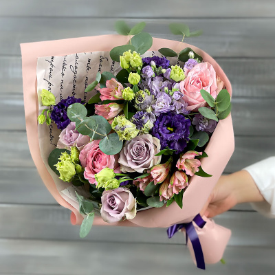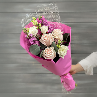Букет из роз, лизиантусов и маттиол| 4 700 Р | без скидки |