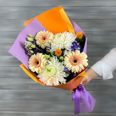 Букет из гербер, хризантем и эустом| 4 500 Р | без скидки |