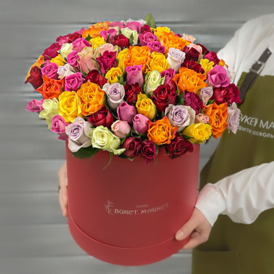 Букет из 101 разноцветной Кенийской розы в шляпной коробке| 14 300 Р | без скидки |