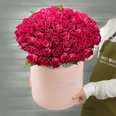Букет из 101 малиновой Кенийской розы в шляпной коробке| 16 200 Р | без скидки |