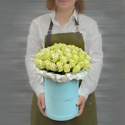 Букет из 51 белой Кенийской розы в шляпной коробке| 9 700 Р | без скидки |