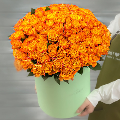 Букет из 101 оранжевой Кенийской розы в шляпной коробке| 16 500 Р | без скидки |