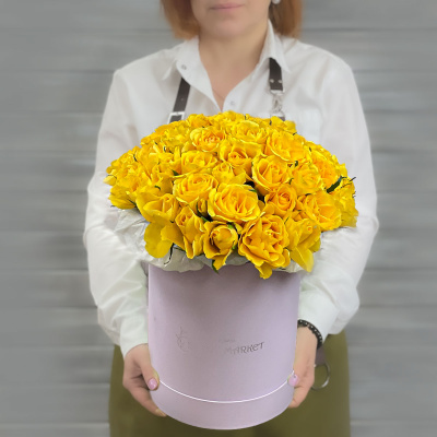Букет из 51 желтой Кенийской розы в шляпной коробке| 8 300 Р | без скидки |