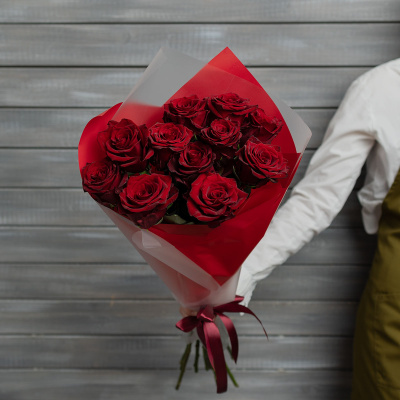 11 красных роз в упаковке Эквадор 60 см| 5 300 Р | без скидки |