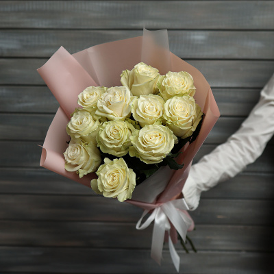 11 белых роз в упаковке Эквадор 60 см| 5 100 Р | без скидки |