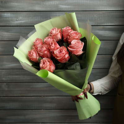 11 розовых роз в упаковке Эквадор 60 см| 4 700 Р | без скидки |