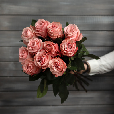 11 розовых роз с лентой Эквадор 60 см| 4 600 Р | без скидки |