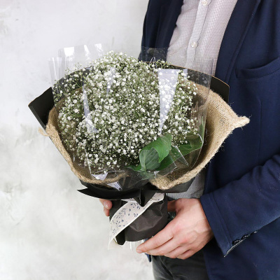 Гипсофила, Упаковка в ассортименте, Листья хоста, Лента, Плёнка прозрачная