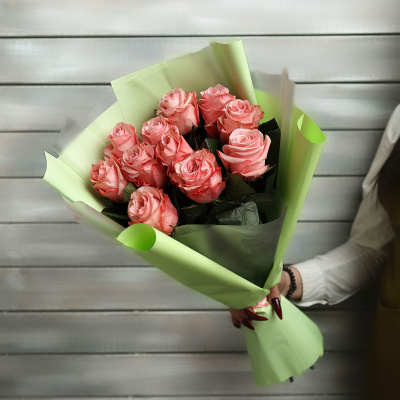 9 розовых роз Эквадор 50 см в упаковке| 4 000 Р | без скидки |