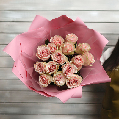 15 нежно-розовых роз в упаковке Эквадор 50 см| 5 200 Р | без скидки |