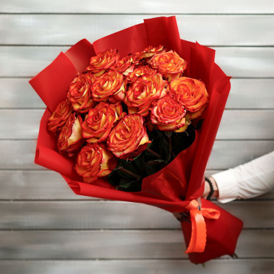 15 оранжевых роз в упаковке Эквадор 50 см| 5 000 Р | без скидки |