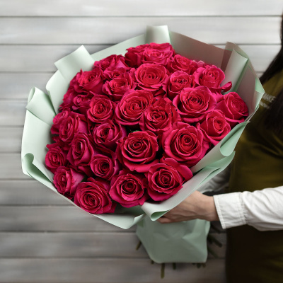 27 малиновых роз Эквадор 60 см в упаковке| 10 400 Р | без скидки |