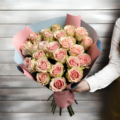 25 нежно-розовых роз в упаковке Эквадор 50 см| 6 900 Р | без скидки |