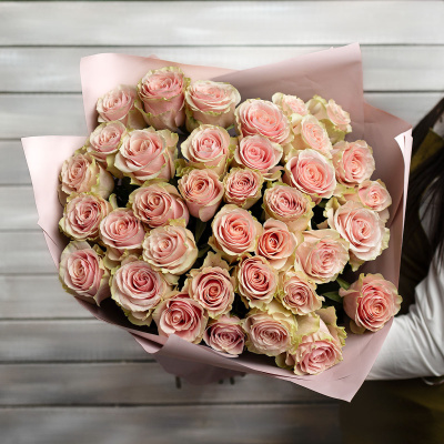 35 нежно-розовых роз в упаковке Эквадор 50 см| 9 100 Р | без скидки |