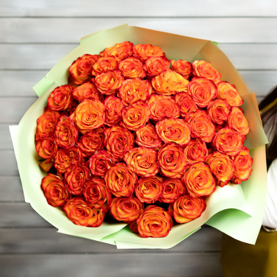 51 оранжевая роза в упаковке Эквадор 50 см| 13 200 Р | без скидки |