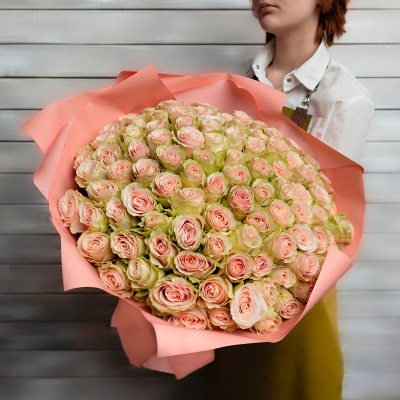 75 нежно-розовых роз Эквадор 60 см в упаковке| 27 400 Р | без скидки |