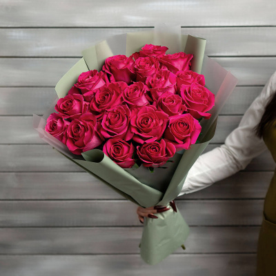 19 малиновых роз Эквадор 60 см в упаковке| 7 100 Р | без скидки |